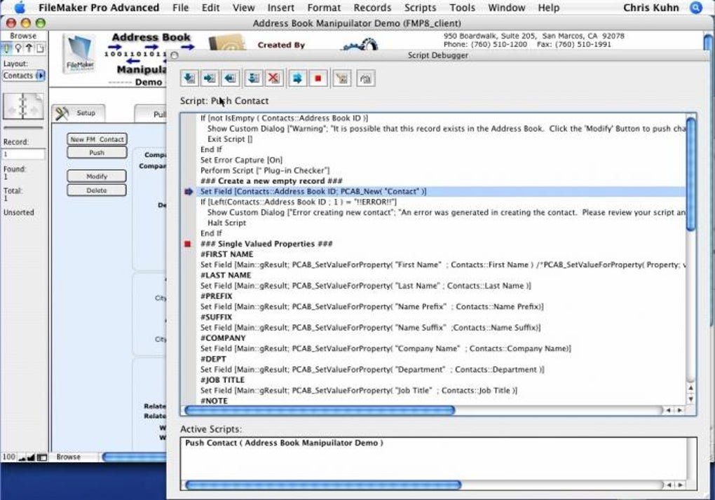 De esta forma, podrás crear nuevos contactos en FileMaker, acceder a toda la información de Address Book desde FileMaker, realizar búsquedas en la libreta de tu equipo desde FileMaker Pro y, evidentemente, editar o borrar los contactos de tu libreta desde FileMaker Pro, ¿qué te parece?